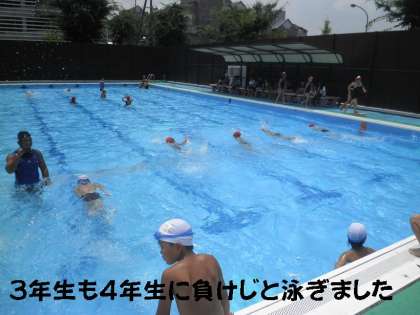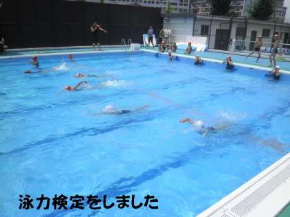 今日は,夏休み前の最後のプール学習でした。3,4年生と泳力の検定をしました。