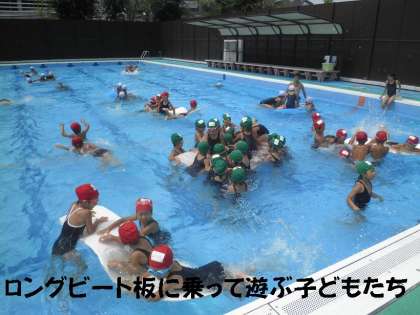 学習会のあと,引き続いてプールに入る子どもたちでいっぱいです。