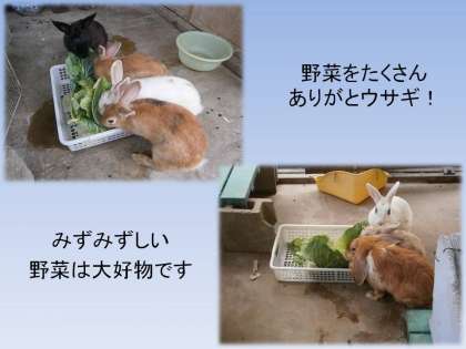食欲旺盛のウサギたちです。これからも,もしご家庭で野菜くずが出ましたら,よろしくお願いします。