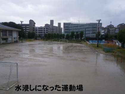今朝は,久しぶりに本降りになりました。7時ごろから約1時間ほどでしたが,大雨になり,学校の運動場もすっかり水浸しになりました。