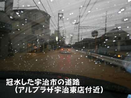 宇治方面は,道路冠水・住宅床下浸水の被害がでています。JR,京阪,近鉄は,現時点で運休しています。
