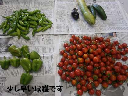 現在,3日に一度,収穫をしています。2週間後(長期宿泊学習9/2〜7)まで収穫できればいいのですがね??