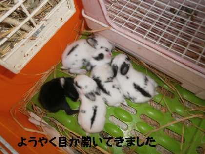 ウサギの赤ちゃんの目が開きました。これから動きが活発になってくれでしょうね。でもまだまだ,母ウサギから離れられません。