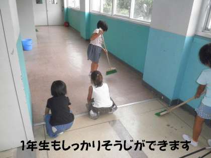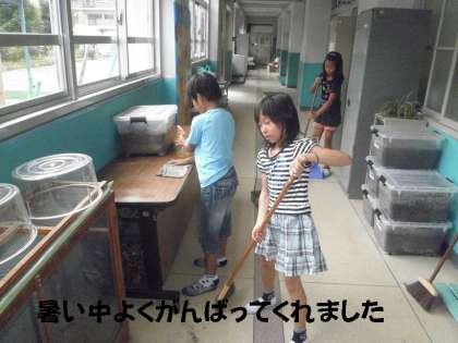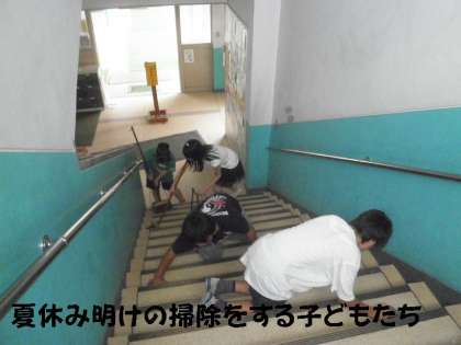 お昼前に,全校一斉に大掃除をしました。30日間の夏休み中にたまったほこりをていねいに掃いて,水ぶきをしました。