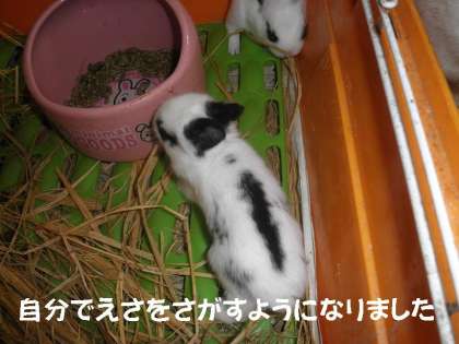 5羽の赤ちゃんウサギは,すっかり毛もはえそろい,目もパッチリ開いたので,動きが活発になってきました。