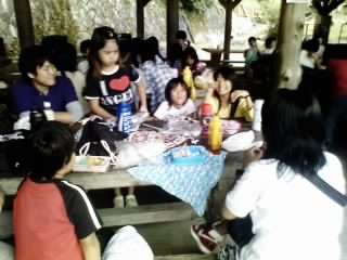 班つきのお兄さん、お姉さんとすっかり打ち解けて、たのしい昼食です。笑顔いっぱい、全員元気です。