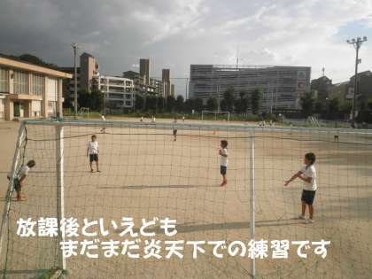 サッカー部は,放課後といえども,まだまだ炎天下の運動場での練習です。水分補給をしっかりして,汗いっぱいかきながらも,大好きなサッカーに熱中しています。