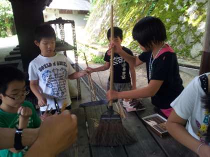 自分の『竹はし』に名前を書き終わって全員が完成したグループは,しっかりと後片付けをして,使う前よりもきれいに野外炊飯場を掃除しましょう。