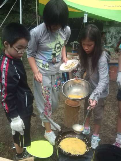 子どもたちは,薪に火を付けるのがだんだん早くなってきました。ねむい目をこすりながら,朝食を作っている子もいました。