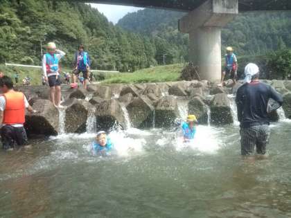学校のプールとは違う楽しさがあったみたいです。安全に気をつけて『川遊び』を楽しんでいます。