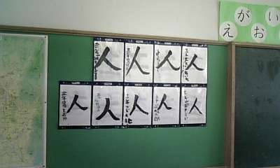 また,習字の時間では「人」の字を上手に書く(写真右上)ことができました。