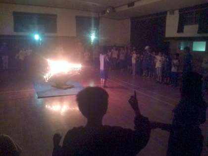 旧八桝小学校の体育館で,『キャンドルファイヤー』を行いました。
