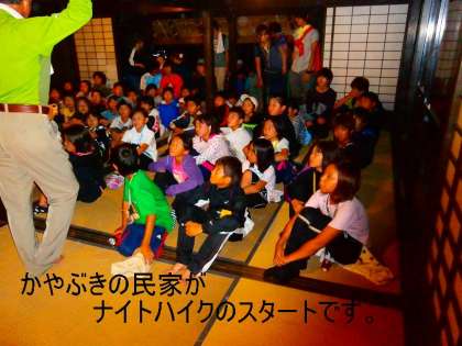 今日の夜の活動は,ナイトハイクでした。校長先生から,昔,山の家で起こった実話?を話してもらってから,各班ごとにスタートしました。