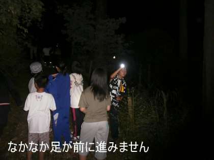 最初は,なかなか足が前に進みませんでしたが,班行動で勇気をもって暗闇の道を歩いていきました。