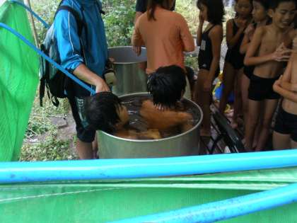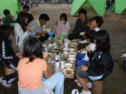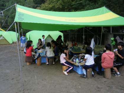 ドラム缶風呂タイムと夕食(野外炊事)の様子です。