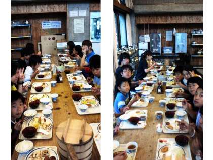 5年生の子どもたちは,元気にモリモリと夕食をとっています。