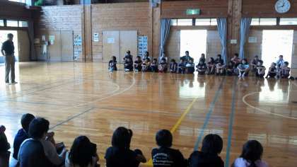 予定通り,午前12時30分から『プレーホール』で『退所式』を行いました。