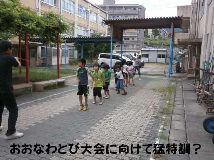 来週の「ふれあいプラザ」の小学生大縄跳び大会に向けて,猛特訓しています。学校対抗で実施されます。他校は6年生が中心ですが,本校は毎年4年生が出場し健闘しています。