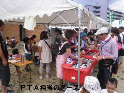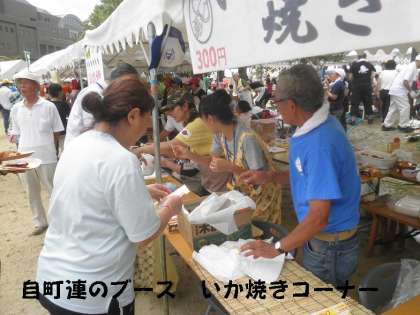 PTA担当のブース「ジュースコーナー」自町連担当のブース「いか焼きコーナー」は,超人気で行列ができています。