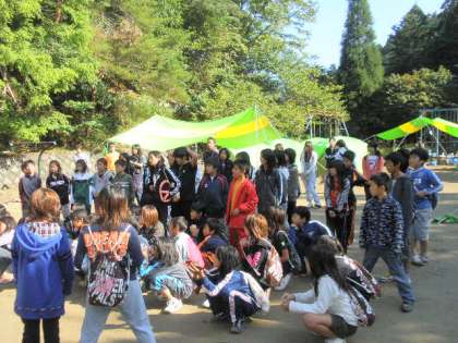 情報が遅くなり申し訳ありません。八桝小学校での野営生活を終えて,「花背山の家」にもどってきました。