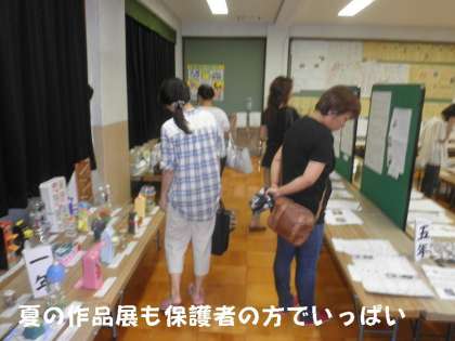 参観授業の合間をぬって,南校舎3階,多目的室の「夏の作品展」にも多くの保護者の参観がありました。ありがとうございます。