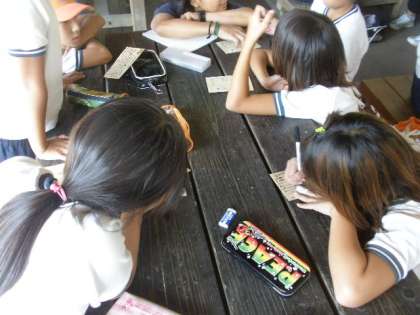 洗濯タイム後,休憩をかねて「木はがき」にこれまでの思い出を書きました。明日投函します。楽しみにしていてください。