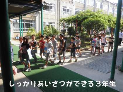 見送りの先生たちに,しっかりとあいさつをして笑顔で出発しました。