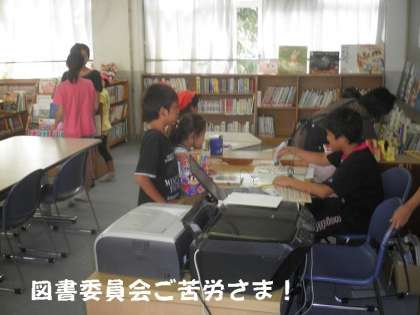 中間休みに遊び時間をつぶして,環境委員会はプランターの花の植えかえ,図書委員会は本の貸し出しをがんばっていました。