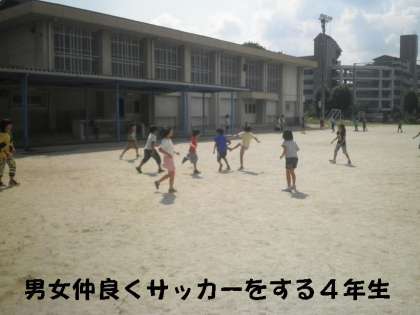 最近の4年生は,休み時間に男女仲良く遊んでいる姿を見かけます。大縄跳びやサッカーなど,みんなで一緒に楽しんでいます。