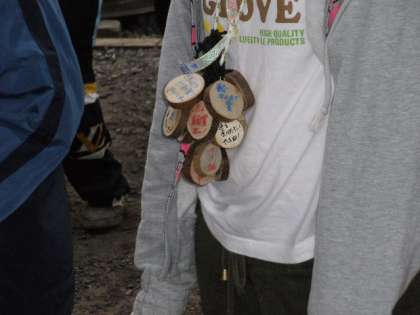 班で競い合っている「木メダル」表彰も5日目となると,たくさんたまってきています。班長さんは首からかけて重そうです。