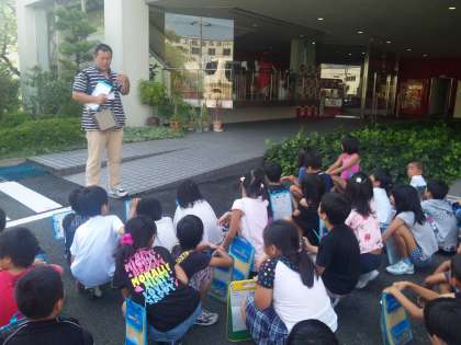 工場の方から,『コカ・コーラ京都工場』の玄関で,見学のための簡単な説明を受けました。