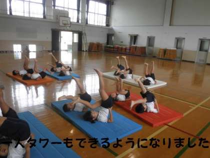 合同体育でマット運動をしています。