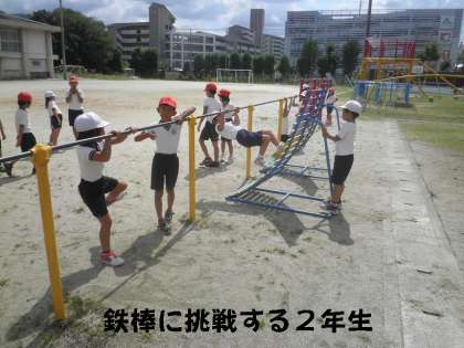 この時期の鉄棒は,手の皮がむけやすくなります。でも,子どもたちは,そんなことを気にすることなく,自分のできる技に取り組んでいました。