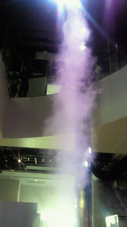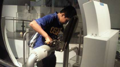 子どもたちは,いろいろな展示品の物をたたいたり,押したりして,科学を体験しています。『竜巻ラボ』では,自然界で竜巻ができる仕組みを学習したり,『水のひろば』では,地球における水の循環の仕組みを学習したりしています。