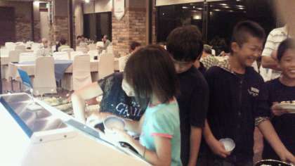 豪華な料理に少し飽きたのか,今度は『アイス』と『ケーキ』に大行列!!!