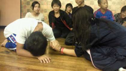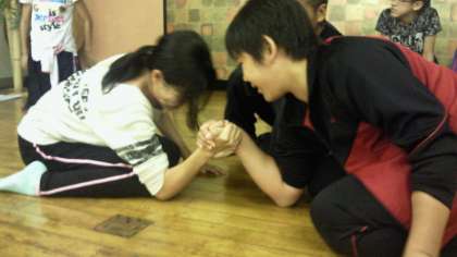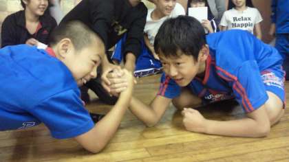 子どもたちはみんな,一生懸命に優勝めざして『腕相撲』をしています。