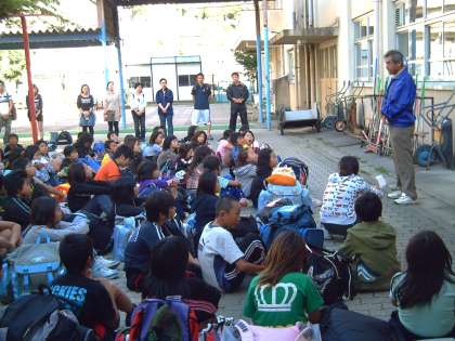 学校の中庭で「解散式」です。