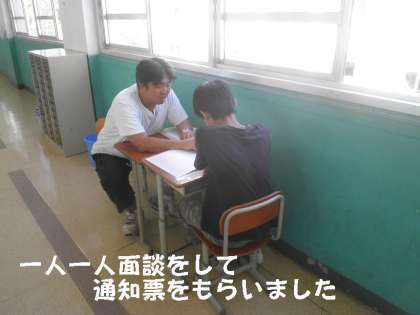 学年のトップを切って,2校時に通知票を渡しました。一人一人,担任の先生と面談しながら,通知票の評価の説明を受けていました。