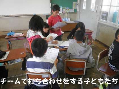 その間,他の子どもたちは,体育ではじまる「サッカー」学習のチームごとの練習内容の打ち合わせを自主的にがんばっていました。