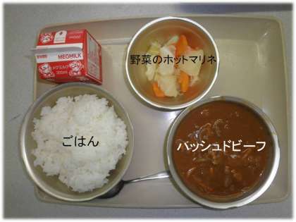 「ごはん」「ハッシュドビーフ」「野菜のホットマリネ」