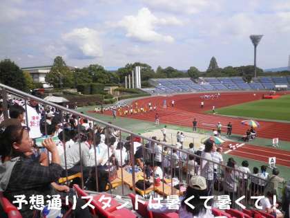 競技場のスタンドは,日陰がまったくなく,予想通り暑くて暑くて!