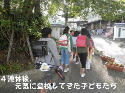 4連休後,子どもたちは元気に登校してきました。さわやかな秋をむかえ,勉強に運動にがんばってほしいものです。