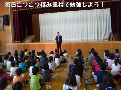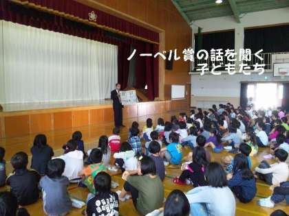 始業式での校長先生のお話は,ノーベル賞授賞のうれしいニュースと後期もしっかり目当てを持って,毎日こつこつと積み重ねた勉強しようという励ましのお話でした。