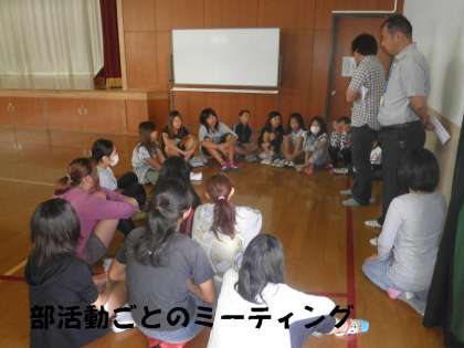 ほぼ全員が部活動に入部しています。全体説明のあと,各部活動に分かれてミーティングをしました。