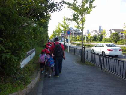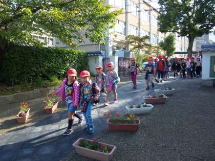 みんなうれしそうに元気よく学校を出発しました!