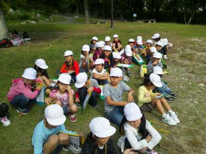 子どもたちは,さっそく秋見つけのために班行動をします。