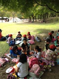 子どもたちが,すこし遊び疲れてきたので,少し早いですが,『お弁当』の時間にしました。