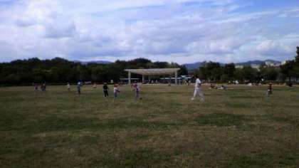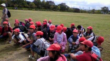 たくさんの子どもたちが,広い芝生の上を楽しそうに走り回っています。