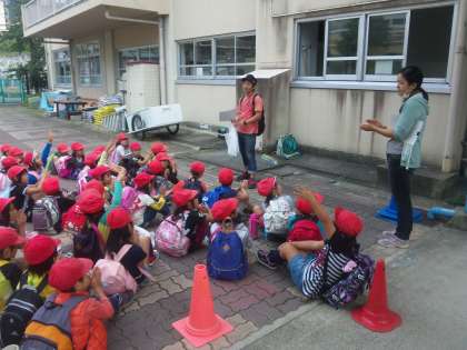 正門のところを歩いている子どもたちの様子は,全員がとてもニコニコしていて,遠足が本当に楽しかったようです。