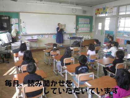 もう何年も続けていただいているので,子どもたちも楽しみにしています。読み聞かせが始まると,子どもたちはじっと絵本を見つめながら聞いていました。